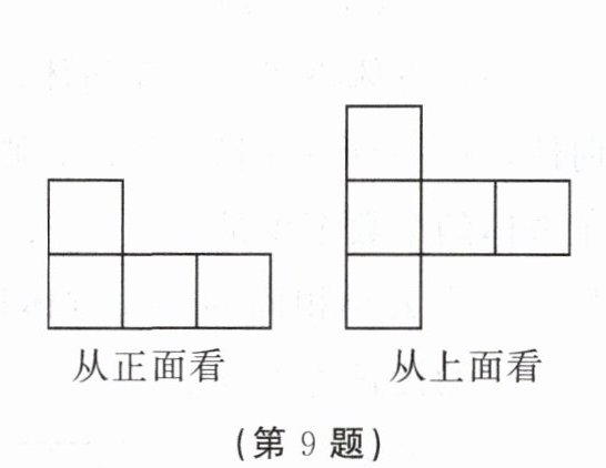 9. 一个几何体由若干大小相同的小立方块搭成,如图所示的分别是从它的正面、上面看到的形状图,那么搭成该几何体至少需用