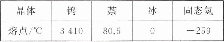 3. 在标准大气压下,钨、萘、冰、固态氢四种晶体的熔点如下表: