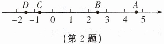2. 如图所示,分别用数轴上的点$A$,$B$,$C$,$D$表示数,则下列说法正确的是(