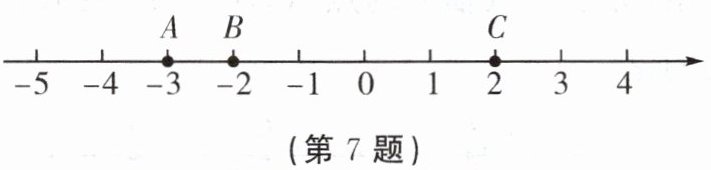 7. 如图所示,在数轴上有三个点$A$,$B$,$C$,请回答下列问题.
