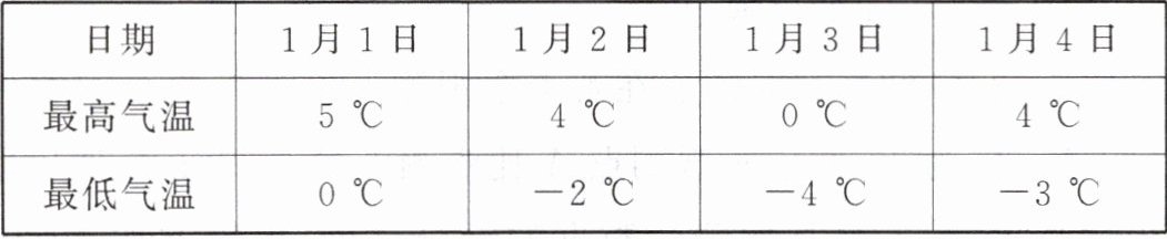 2. 某地今年 1 月 1 日至 4 日的每天的最高气温与最低气温如下表: