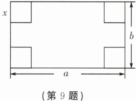 9. 如图,在长和宽分别是 $ a $,$ b $ 的长方形纸片的四个角都剪去一个边长为 $ x $ 的正方形。