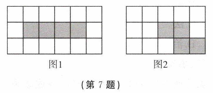 7. 如图,在无阴影的方格中选出两个画上阴影,使它们与图中 4 个有阴影的正方形一起可以构成一个正方体表面的展开图.(在下面两幅图中任选一幅进行解答,只填出一种答案即可)