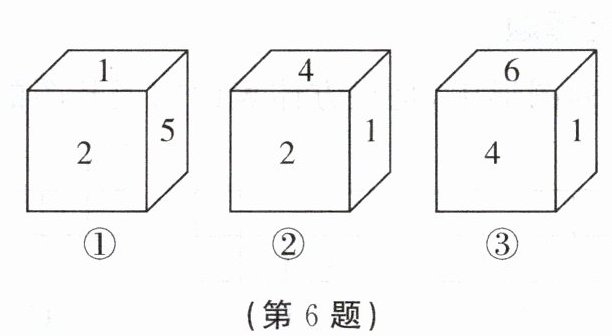 6. 已知一个不透明的正方体的六个面上分别写着 1 至 6 六个数字,如图是我们能看到的三种情况,那么 4 所在面的对面上的数字是