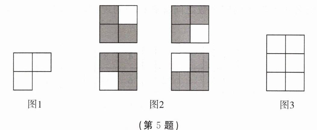 5. 把图 1 放置在 $ 2× 2 $ 的方格纸中,使它恰好盖住其中三个小正方形(图 1 可以任意旋转),共有 4 种不同的放置方法,如图 2 所示.