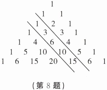 8. 如图所示的数字三角形被称为“杨辉三角”. 图中两条平行线之间的一列数:$ 1,3,6,10,15,·s $,我们把第一个数记为 $ a_1 $,第二个数记为 $ a_2 $,第三个数记为 $ a_3 ·s ·s $ 第 $ n $ 个数记为 $ a_n $,则 $ a_{2024} - a_{2022} =$