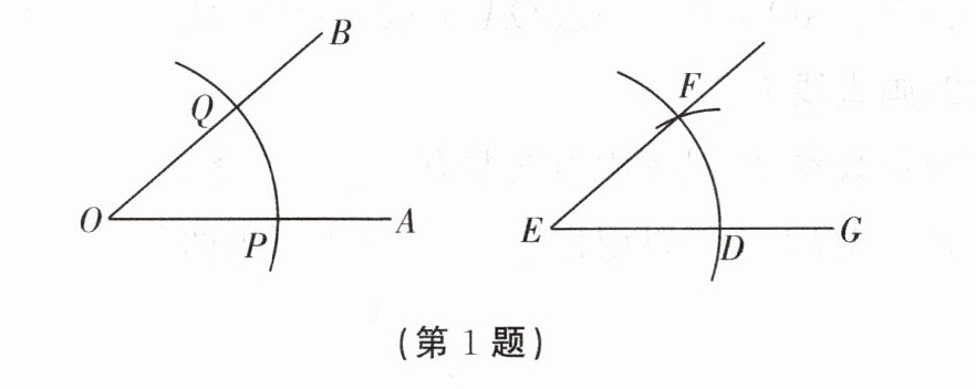 (2) 以①为圆心,任意长为半径画弧,交$OA$于点$P$,交$OB$于点$Q$.