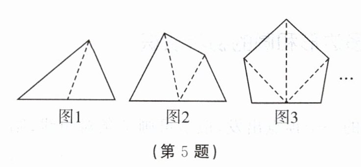 5. 如图,将多边形分割成三角形,图 1 中可分割出 2 个三角形;图 2 中可分割出 3 个三角形;图 3 中可分割出 4 个三角形……由此,你能猜测出 $ n $ 边形可以分割出
