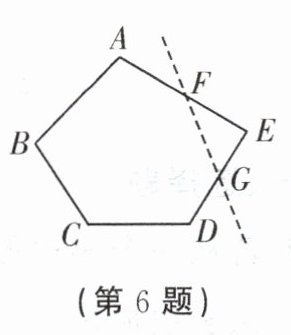 6. 如图,将五边形 $ ABCDE $ 沿虚线裁去一个角,得到六边形 $ ABCDGF $,则该六边形的周长一定比原五边形的周长小,理由为