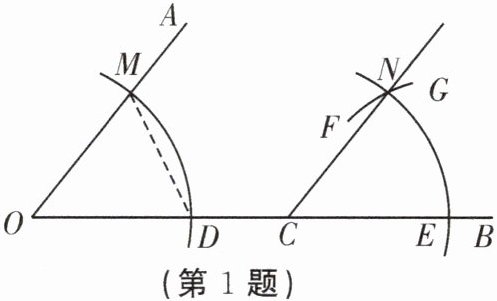 1. 如图,用尺规作$∠NCB = ∠AOC$,作图痕迹中$\overset{\frown}{FG}$是(