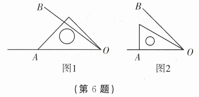6. 如图1、图2所示,把一副三角尺先后放在$∠AOB$上,则$∠AOB$的度数可能(