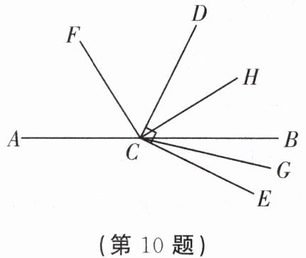10. 如图,∠DCE=90$^{\circ}$,CF,CH,CG 分别平分∠ACD,∠BCD,∠BCE,有下列结论:①∠DCF+∠BCH=90$^{\circ}$;②∠FCG=135$^{\circ}$;③∠ECF+∠GCH=180$^{\circ}$;④∠DCF-∠ECG=45$^{\circ}$.其中,正确的有