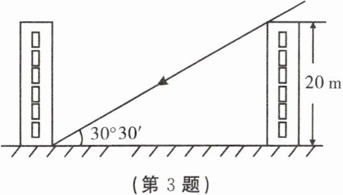 3. 如图,青岛位于北纬 $ 36^{\circ}4' $,通过计算可以求得:在某日正午时分的太阳光与地面成 $ 30^{\circ}30' $。因此,在规划建设楼高为 $ 20 $ m 的小区时,两楼间的距离最小为