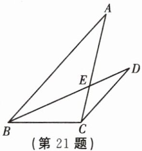 21. (12 分)如图,在 $ \triangle ABC $ 中,$ AB = 8 $,$ BC = 4 $,$ CA = 6 $,$ CD // AB $,$ BD $ 是 $ \angle ABC $ 的平分线,$ BD $ 交 $ AC $ 于点 $ E $,求 $ AE $ 的长.