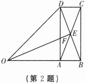 2. 如图,$\angle BOD = 45^{\circ}$,$BO = DO$,点 $A$ 在 $OB$ 上,四边形 $ABCD$ 是矩形,连接 $AC$,$BD$ 交于点 $E$,连接 $OE$ 交 $AD$ 于点 $F$。有下列结论: