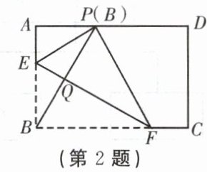 2. 如图,在矩形 $ABCD$ 中,点 $E$,$F$ 分别在边 $AB$,$BC$ 上,且 $AE = \frac{1}{3}AB$,将矩形沿直线 $EF$ 折叠,使点 $B$ 恰好落在边 $AD$ 上的点 $P$ 处,连接 $BP$ 交 $EF$ 于点 $Q$,有 $4$ 个结论:① $EF = 2BE$;② $PF = 2PE$;③ $FQ = 4EQ$;④ $\triangle PBF$ 是等边三角形。其中正确的是( )