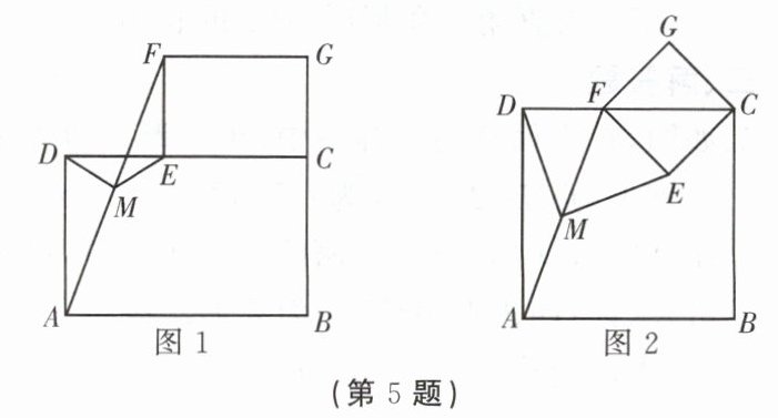 (2) 按如图 $2$ 所示摆放正方形纸片 $ABCD$ 与正方形纸片 $ECGF$,使点 $F$ 在边 $CD$ 上,点 $M$ 仍为 $AF$ 的中点,试证明 (1) 中的结论仍然成立。