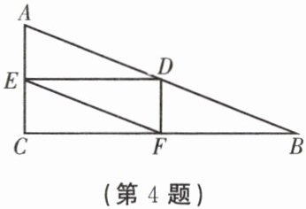 4. 如图,在 $ Rt \triangle ABC $ 中,$ \angle ACB = 90^{\circ} $,点 $ D $,$ E $,$ F $ 分别是 $ AB $,$ AC $,$ BC $ 的中点,连接 $ DE $,$ DF $,$ EF $,要使四边形 $ DECF $ 是正方形,只需增加一个条件为