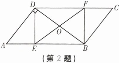 2. 如图,在 $ □ ABCD $ 中,对角线 $ BD \perp AD $,$ AB = 10 $,$ AD = 6 $,点 $ O $ 为 $ BD $ 的中点,点 $ E $ 为边 $ AB $ 上一点,直线 $ EO $ 交 $ CD $ 于点 $ F $,连接 $ DE $,$ BF $。下列结论不成立的是(
