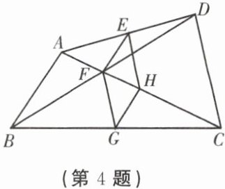 4. 如图,点$E$,$F$,$G$,$H$分别是任意四边形$ABCD$中$AD$,$BD$,$BC$,$CA$的中点,当四边形$ABCD$的边至少满足条件______时,四边形$EFGH$是菱形.