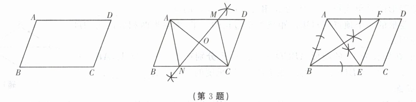3. 如图,在给定的一张平行四边形纸片上作一个菱形.甲、乙两人的作法如下: