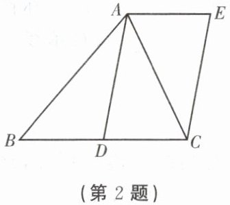 2. 如图,$AD$是$\triangle ABC$的中线,四边形$ADCE$是平行四边形,增加下列条件能判断$□ ADCE$是菱形的是( )