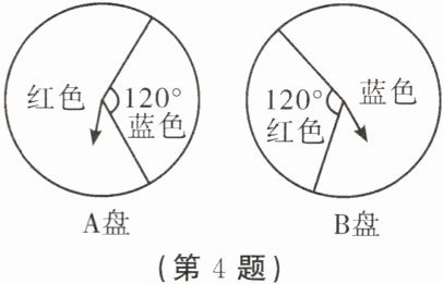 4. 用如图所示的两个转盘进行“配紫色”游戏,则配得紫色的概率是________。(若其中一个转盘转出蓝色,另一个转盘转出红色,则配得紫色)