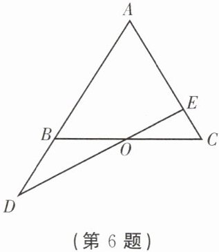 6. 如图,点$O$是$\triangle ABC$的边$BC$上的中点,且$\frac{AB}{AD} = \frac{2}{3}$,则$\frac{AE}{AC} =$______.