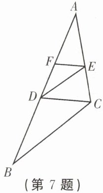 7. 如图,在$\triangle ABC$中,点$D$是$AB$上的一点,过点$D$作$DE // BC$交边$AC$于点$E$,过点$E$作$EF // DC$交$AD$于点$F$。已知$AD = 2\sqrt{6} cm$,$AB = 8 cm$。