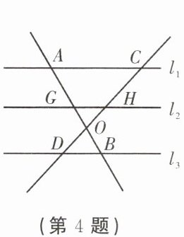 4. 如图,已知$l_1 // l_2 // l_3$,$AG = 2$,$OB = 1$,$CH = 3$,$DH = 4$,则$GO =$______.