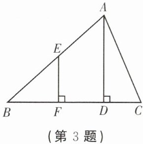 3. 如图,$AD$是$\triangle ABC$的高,$EF \perp BC$,点$F$为垂足,$E$是$AB$边的中点,$DC = \frac{1}{2}BF$,若$BC = 10$,则$DC$的长是( )