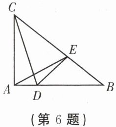 6. 如图,$Rt \triangle ABC$ 的两条直角边 $AB = 4\ cm$,$AC = 3\ cm$,点 $D$ 沿 $AB$ 从点 $A$ 向点 $B$ 运动,速度是 $1\ cm/s$,同时,点 $E$ 沿 $BC$ 从点 $B$ 向点 $C$ 运动,速度为 $2\ cm/s$. 动点 $E$ 到达点 $C$ 时两点运动终止. 连接 $DE$,$CD$,$AE$.