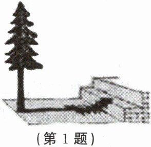 1. 兴趣小组的同学要测量树的高度.在阳光下,一名同学测得一根长为 1 m 的竹竿的影长为 0.4 m,同时另一名同学测量树的高度时,发现树的影子不全落在地面上,有一部分落在教学楼的第一级台阶上,测得此影子长为 0.2 m,一级台阶高为 0.3 m,如图所示,若此时落在地面上的影长为 4.4 m,则树高为( )
