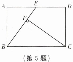 5. 如图,在矩形 $ABCD$ 中,$AB = 2$,$BC = 3$,$E$ 是 $AD$ 的中点,则点 $C$ 到 $BE$ 的距离 $CF =$____.