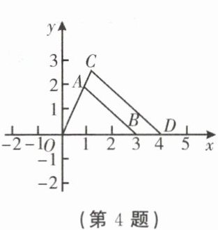 4. 如图,$ \triangle AOB $ 以点 $ O $ 为位似中心,扩大到 $ \triangle COD $ 处,各点坐标分别为 $ A (1, 2) $,$ B (3, 0) $,$ D (4, 0) $,则点 $ C $ 的坐标为 。