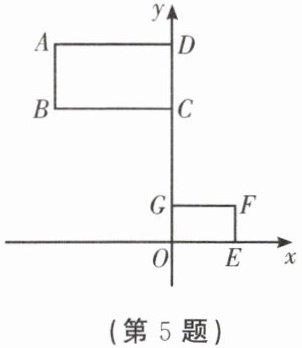 5. 如图,在平面直角坐标系中,矩形 $ ABCD $ 与矩形 $ EFG O $ 位似,矩形 $ ABCD $ 的边 $ CD $ 在 $ y $ 轴上,点 $ B $ 的坐标为 $ (-4, 4) $,矩形 $ EFG O $ 的两边都在坐标轴上,且点 $ F $ 的坐标为 $ (2, 1) $,则矩形 $ ABCD $ 与矩形 $ EFG O $ 的位似中心的坐标是 。
