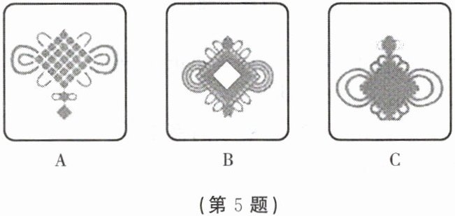 5. “中国结”是我国特有的手工编织工艺品,也是一种传统吉祥装饰物.如图,现有三张正面印有“中国结”图案的不透明卡片A,B,C,卡片除正面图案不同外,其余均相同.将三张卡片正面向下洗匀,小吉从中随机抽取一张卡片,记下图案后正面向下放回,洗匀后再从中随机抽取一张卡片.请用画树状图或列表的方法,求小吉抽到的两张卡片中含有A卡片的概率.