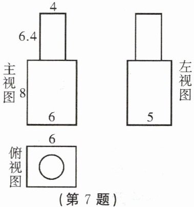 7. 如图是一个几何体的三视图,求该几何体的体积.(单位:cm.π取3.14.结果保留整数)
