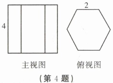 4. 如图是一个底面为正六边形的直六棱柱的主视图和俯视图,则其左视图的面积为______.