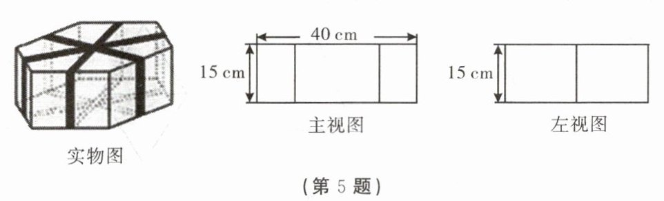 5. 如图是上下底面为全等的正六边形礼盒,其主视图与左视图均由矩形构成,主视图中大矩形边长如图所示,左视图中包含两个全等的矩形,如果用彩色带按如图方式包扎礼盒,所需彩色带长度(不计接头处)至少为______.(若结果带根号则保留根号)