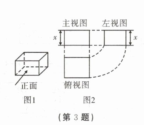 3. 图2是图1中长方体的三视图,用S表示面积,S主=x²+3x,S左=x²+x,则S俯=( )