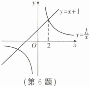 6. 如图,一次函数 $ y = x + 1 $ 的图象与反比例函数 $ y = \frac{k}{x} $ 的图象相交,其中一个交点的横坐标是 $ 2 $.