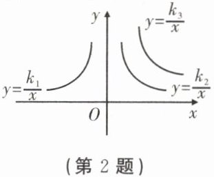 2. 如图是三个反比例函数 $ y = \frac{k_1}{x}, y = \frac{k_2}{x}, y = \frac{k_3}{x} $ 在 $ x $ 轴上方的图象,由此观察得到 $ k_1, k_2, k_3 $ 的大小关系为( )