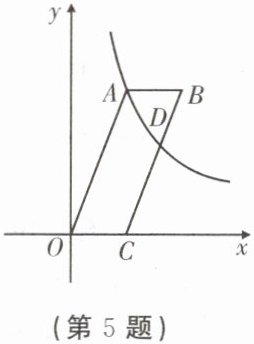5. 如图,四边形 $ OABC $ 是平行四边形,点 $ C $ 在 $ x $ 轴上,反比例函数 $ y = \frac{k}{x}(x > 0) $ 的图象经过点 $ A(5, 12) $,且与边 $ BC $ 交于点 $ D $,若 $ AB = BD $,则点 $ D $ 的坐标为____