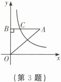 3. 如图,在平面直角坐标系中,点 $ A $ 在第一象限,$ AB \perp y $ 轴于点 $ B $,反比例函数 $ y = \frac{k}{x}(k > 0, x > 0) $ 的图象与线段 $ AB $ 交于点 $ C $,且 $ AB = 3BC $.若 $ \triangle AOB $ 的面积为 $ 12 $,则 $ k $ 的值为____