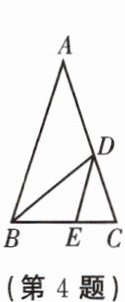 4. 如图,$ \triangle ABC $ 是顶角为 $ 36^{\circ} $ 的等腰三角形.若 $ \triangle ABC $,$ \triangle BDC $,$ \triangle DEC $ 都是黄金三角形 $ \left( 底与腰的比值为 \frac{\sqrt{5} - 1}{2} 的三角形是黄金三角形 \right) $,$ AB = 4 $,则 $ DE = $