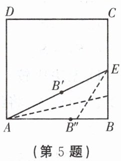 5.证明:设正方形$ABCD$的边长为$2$,$E$为$BC$的中点,$\therefore BE = 1$,$\therefore AE = \sqrt{AB^{2} + BE^{2}} = \sqrt{5}$,又$B'E = BE = 1$,$\therefore AB' = AE - B'E = \sqrt{5} - 1$,$\because AB'' = AB' = \sqrt{5} - 1$,$\therefore AB'' : AB = (\sqrt{5} - 1) : 2$,$\therefore$点$B''$是线段$AB$的黄金分割点。