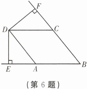 6. 如图,四边形 $ABCD$ 是菱形,$DE\perp AB$ 交 $BA$ 的延长线于点 $E$,$DF\perp BC$ 交 $BC$ 的延长线于点 $F$。求证:$DE = DF$。