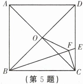 5. 如图,正方形 $ABCD$ 的边长为 $6$,点 $O$ 是对角线 $AC$,$BD$ 的交点,点 $E$ 在 $CD$ 上,且 $DE = 2CE$,过点 $C$ 作 $CF\perp BE$,垂足为点 $F$,连接 $OF$,则 $OF$ 的长为______。