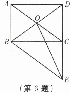 6. 如图,矩形 $ABCD$ 的对角线 $AC$,$BD$ 相交于点 $O$,过点 $B$ 作 $AC$ 的平行线交 $DC$ 的延长线于点 $E$。